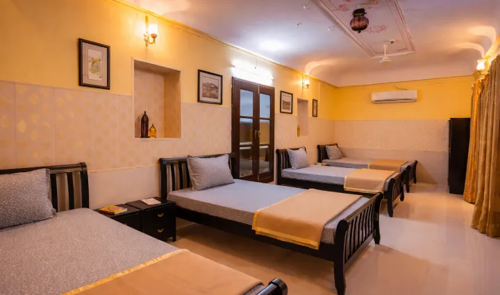 The rooms are of comfortable size and airy and good sized having double beds in each of them and other gadgets . The dormitory provides airey space with basic amenities and comfortable for accommodating groups and family and friends who have come for sight seeing at Udaipur as they do not have to spend heavily on accommodation expenses.